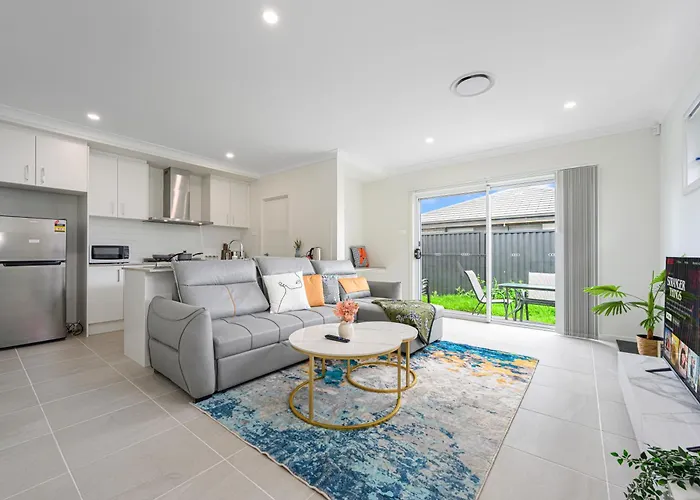 The 2-bedroom Denham Court 4Br With Central Ac & Wifi Near Coles Villa offers proximity to nearby tourist spots, such as Willowdale Shopping Centre, situated 18 minutes' stroll away. This property includes parking and a patio with views of the garden.